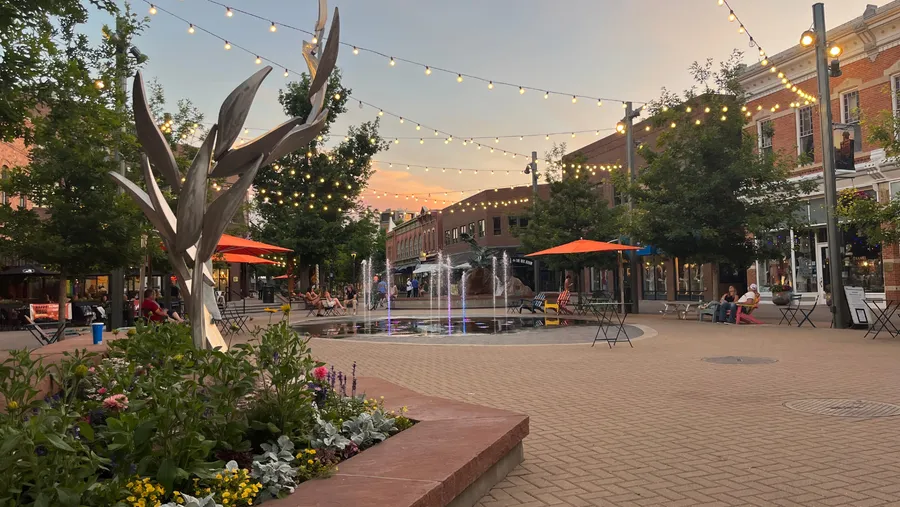 Look for “19 OLD TOWN SQUARE” over the door by the fountains. Then head up the stairs. If you need an elevator it’s over on Walnut.